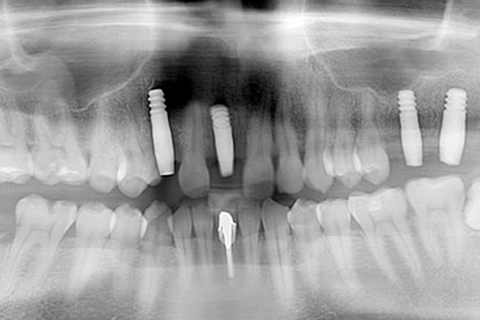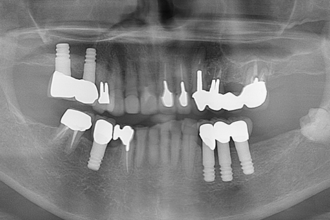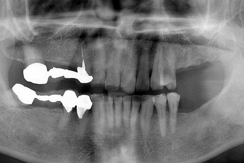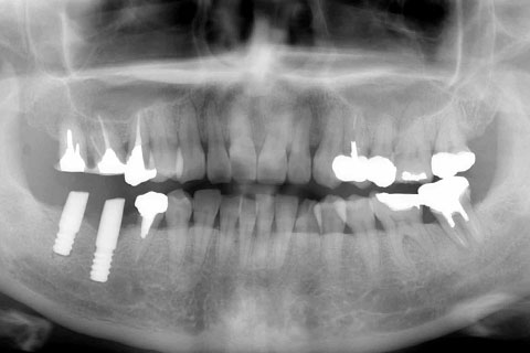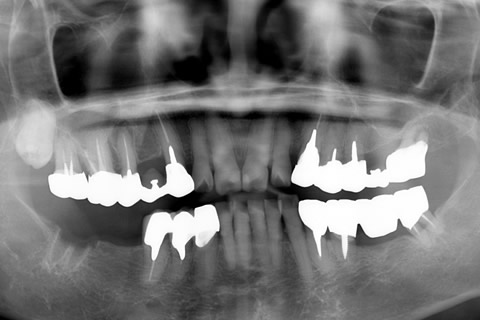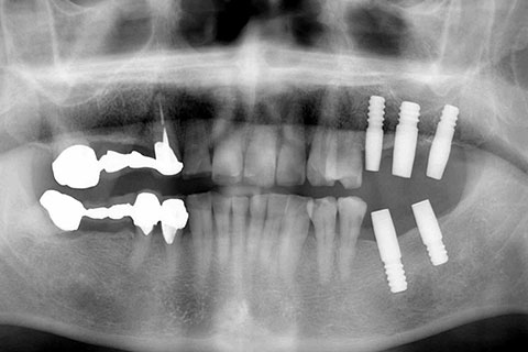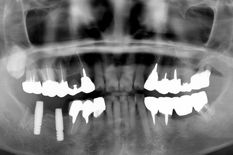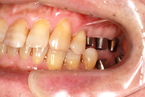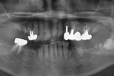 - 左上5.6.7と左下6.7欠損部にインプラント埋入