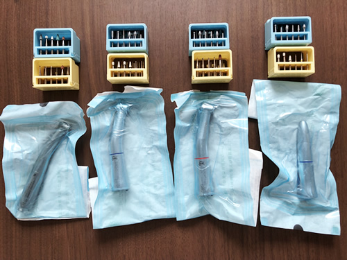 治療時に使用するグローブは患者様毎に交換しております。切削用器具、バー、インスツルメントなどは、一回毎に滅菌を行い、滅菌パックに入れて無菌化の徹底を図っています。