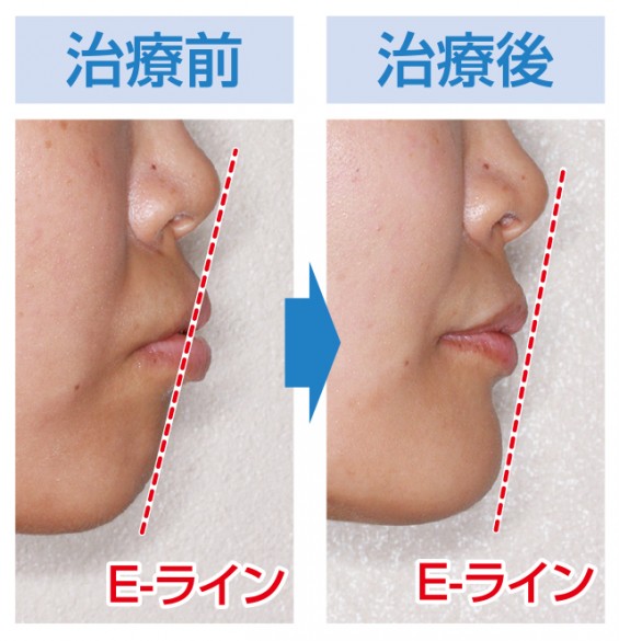 具体的には、人の側貌において、鼻の先端とあごの先端を結んだ線をE―ラインといい、美しい口元を持つ人は「上下の唇がこのラインに触れず、少し後ろにある」とされています。しかし、これはあくまで鼻の高い欧米人のE―ライン評価法であり、日本人は欧米人と比べ鼻が低いため上下口唇がともにほぼこのライン上に位置するのが美の範疇とされています。