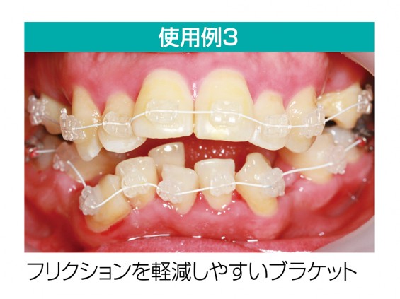 我々、術者側からしても、このブラケットは取り付けが非常にしやすく、月に一度の調整時にワイヤーを通してゴムの脱着を行いますが、その操作も簡便で診療時間の短縮にも貢献しており、同時に患者様の口を開けておく時間も短くなるため、心身性ストレスの軽減にも寄与しているものと考えます。さらに、ローフリクションの構造を持つため、矯正治療の痛みが少なく、治療期間も短縮されます。