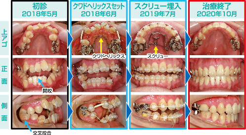 それから通法に従って矯正治療を開始しましたが、画像1のハサミ状咬合は、通常のワイヤー矯正では治りません。